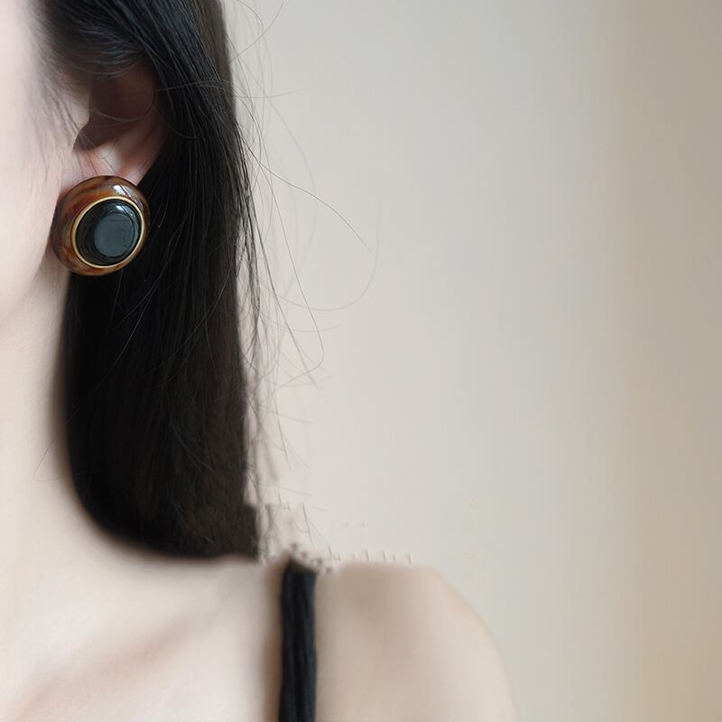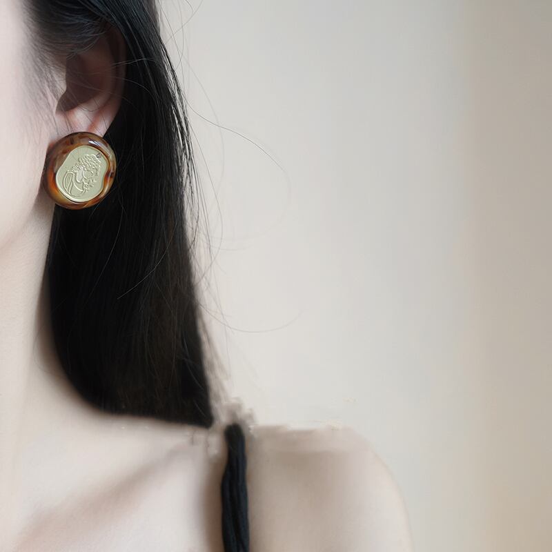 HUALUアンバー色レトロ浮き彫りピアス3s