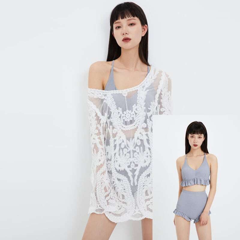 VDQレーストップス&ハイウエストセパレート水着3点セット