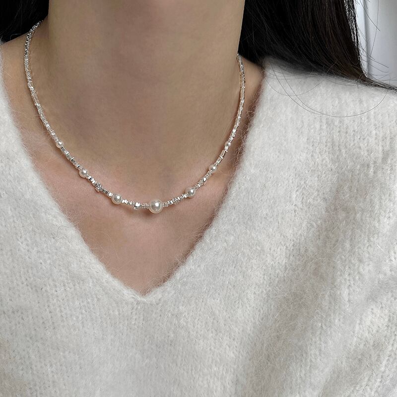 DEMI大人っぽいのパールシルバーネックレス