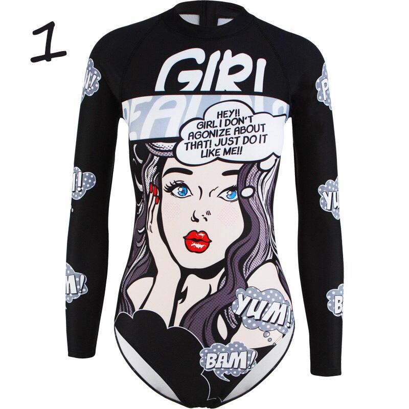 fakecatカジュアル漫画プリントハーフネック長袖水着3s