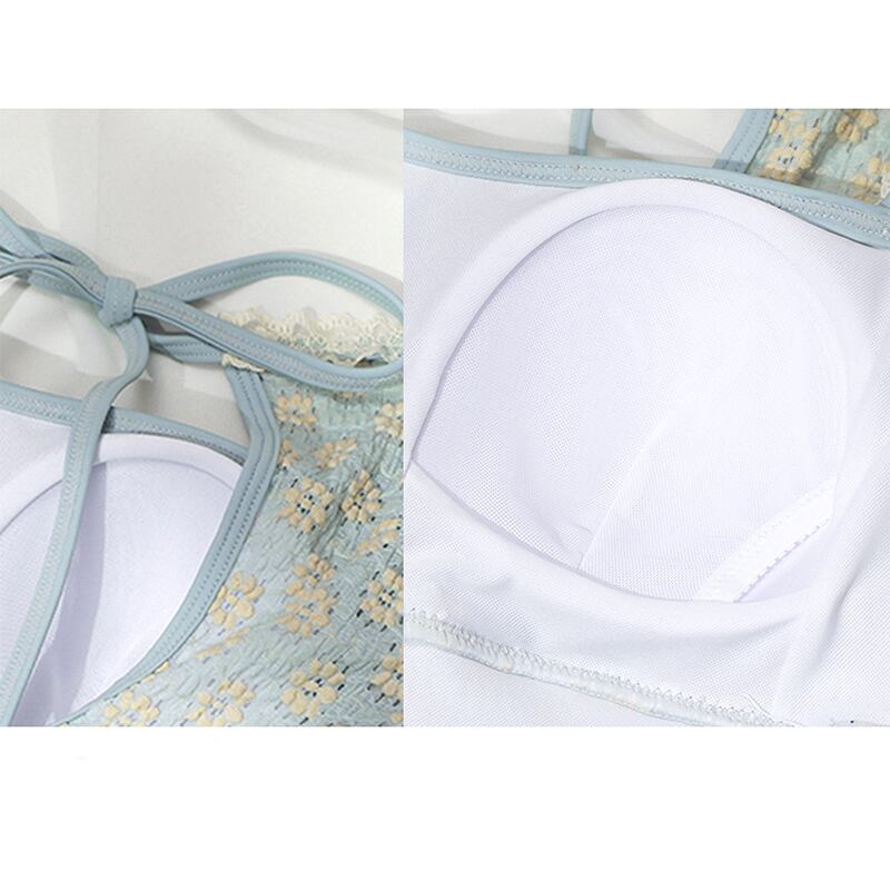 girltime花柄フリルデザインバックレス水着4s